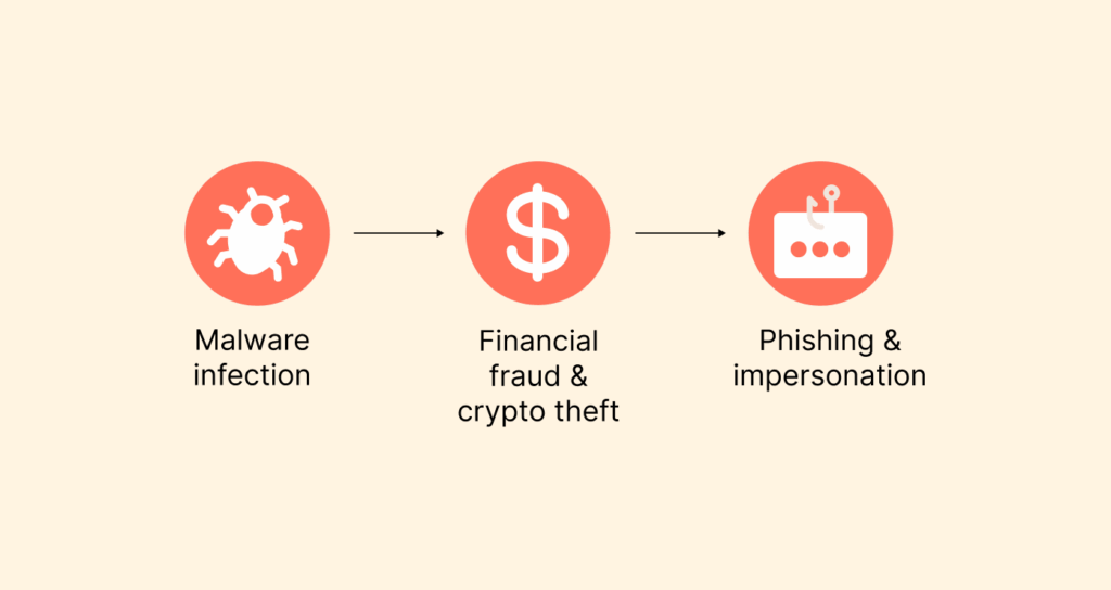 - Bir yanlış tıklama: Tek bir bağlantı cihazınızın güvenliğini tehlikeye atabilir veya kimliğinizi açığa çıkarabilir.