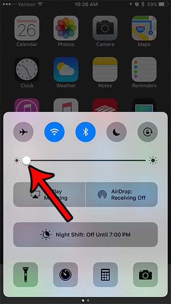 İPhone'unuzun ekranı, cihazdaki en büyük akü kaynaklarından biridir. Ekran parlaklığınızı düşürmek, tipik bir şarjdan aldığınız pil ömrü miktarı üzerinde dramatik bir etkiye sahip olabilir. Kontrol merkezini açmak için ana ekranın altından yukarı kaydırarak ekran parlaklığını kontrol edebilir, ardından parlaklık kaydırıcısını sola sürükleyebilirsiniz.