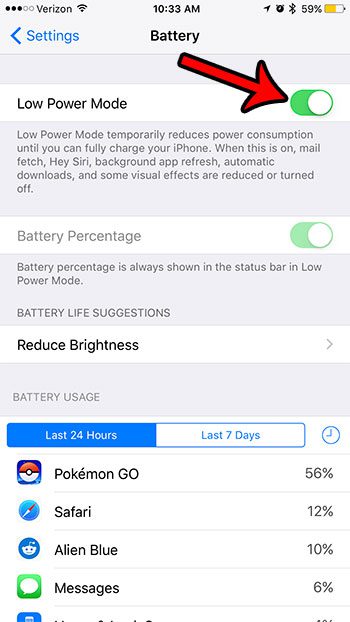 Bu ayar iOS 9'da tanıtıldı ve iPhone 7 pil ömrünüzü iyileştirmek için mevcut daha iyi seçeneklerden biri. Düşük güç modunun etkinleştirilmesi, iPhone pilinizin daha uzun süre dayanması için birkaç ayarı otomatik olarak ayarlar. Düşük güç modu hakkında daha fazla bilgi edinebilirsiniz. İPhone 7'nizde düşük güçlü MOE'yi etkinleştirmek için aşağıdaki adımları tamamlayın: