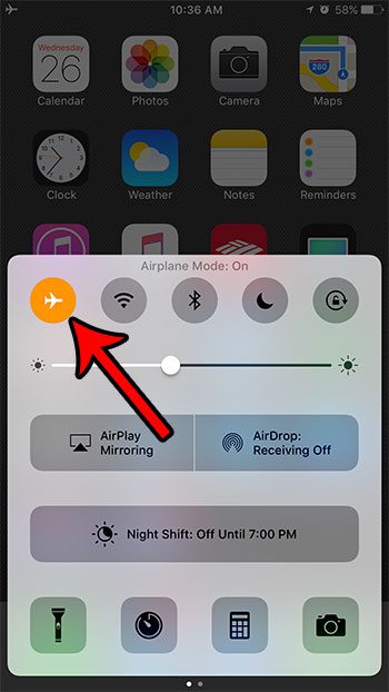 Simge turuncu olduğunda uçak modu etkinleştirilir. Yukarıdaki resimde uçak modunu etkinleştirdim.