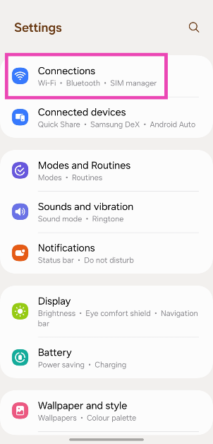 1. Adım:Gidip gelmekAyarlarve seçBağlantılar.