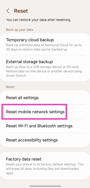 3. Adım:SeçmeMobil Ağ Ayarlarını Sıfırla.