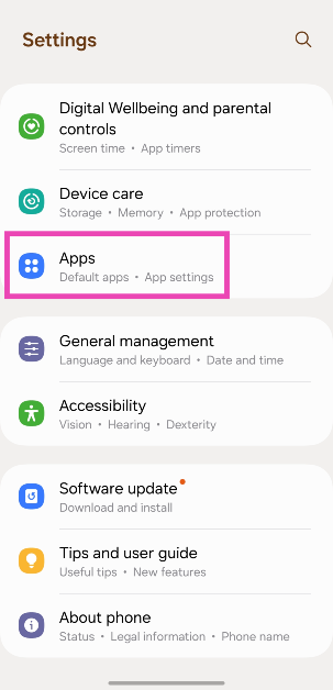 1. Adım:Gidip gelmekAyarlarve seçUygulamalar.