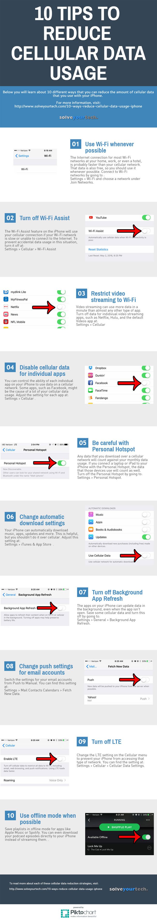 Aşağıda bulunan infografik, tüm bu seçenekleri kolayca paylaşılabilir bir dosyaya özetler, bu nedenle iPhone veri kullanımıyla mücadele edebilecek bir arkadaş veya aile üyesine göndermekten çekinmeyin.