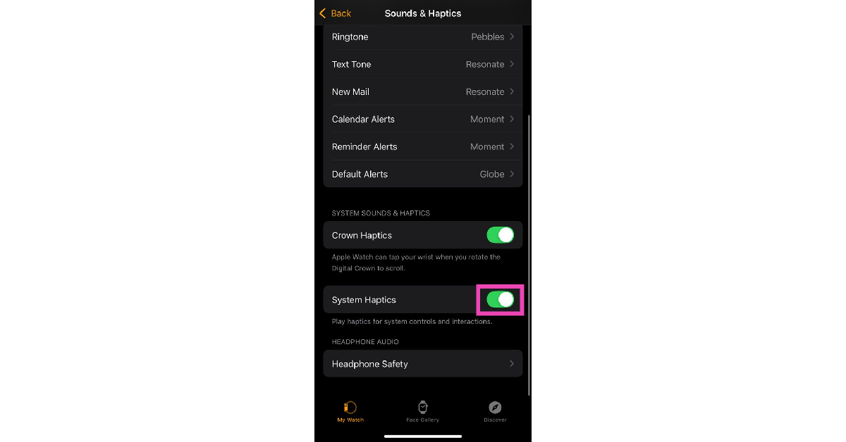 Apple Watch'unuz 'dokunsal uyarılar' kapatıldığı anda titremeyi durdurur. Gidip gelmekAyarlar> Ses ve Apticsve sistem haptiklerinin yanındaki geçiş anahtarını açın.