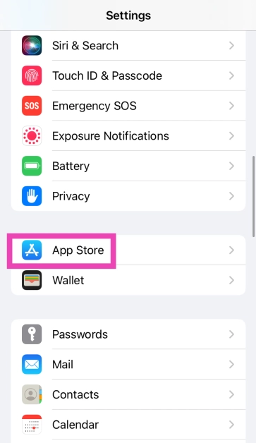 1. Adım:Gidip gelmekAyarlarve seçApp Store.