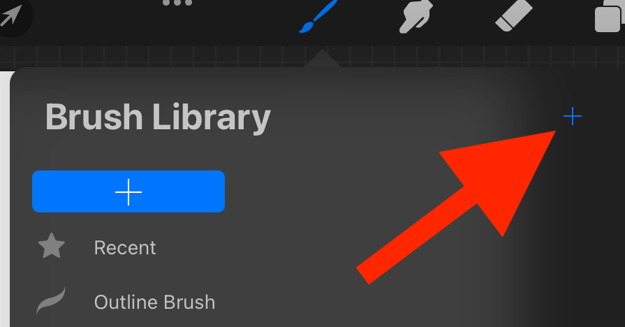 1. Adım:Tuvalinizin sağ üst köşesindeki boya fırçası simgesine dokunarak fırça kütüphanenizi açın. Fırça Kütüphanesi açılır menüsünde,Sağ üst köşe.