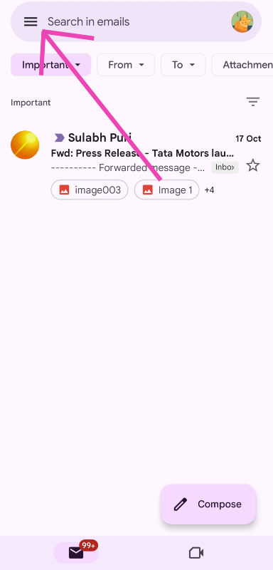 1. Adım: Öğle yemeğiAkıllı telefonunuzdaki Gmail uygulaması.