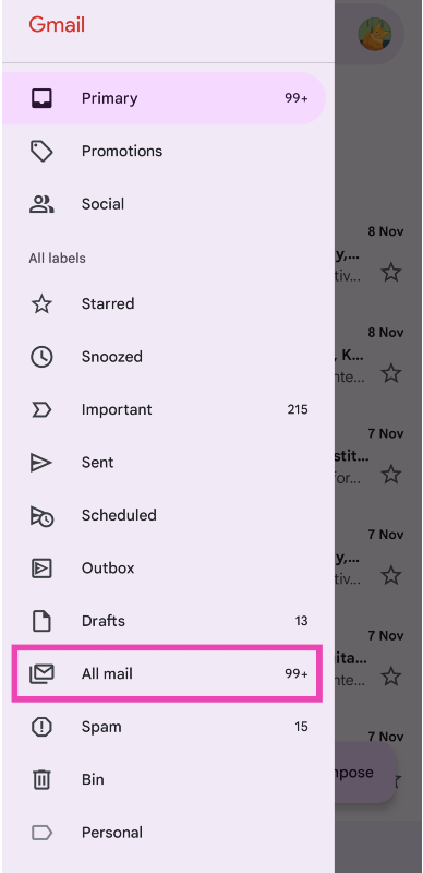 3. Adım:Aşağı kaydırın ve seçinTüm Posta.