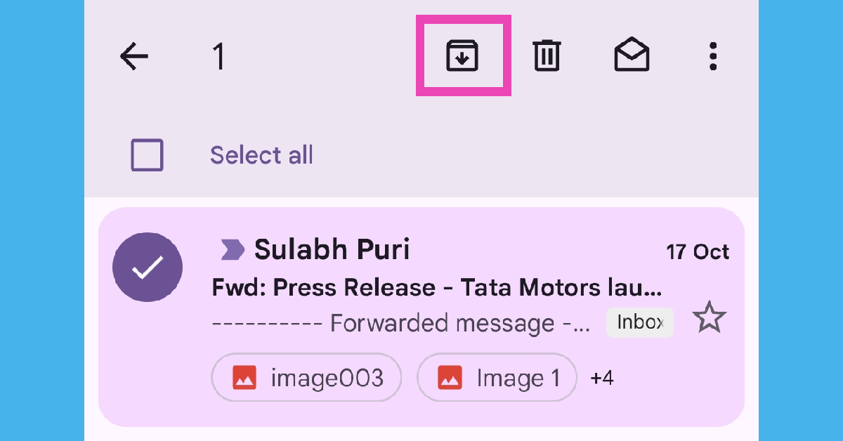 2. Adım:Üzerine tıklayınonay kutusuArşivlemek istediğiniz e -postanın yanında.