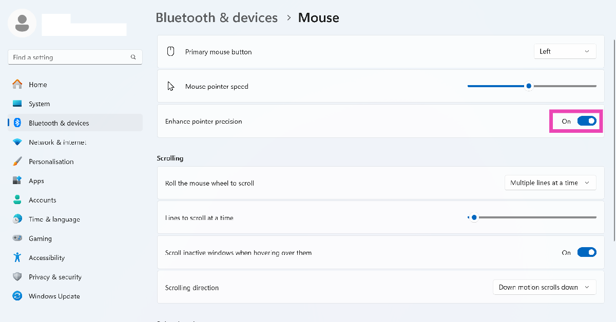 Windows 11 ayarlarından fare ivmesini devre dışı bırakın