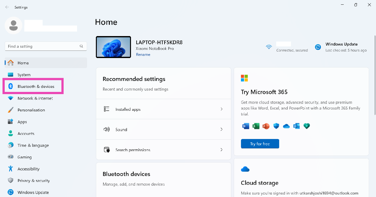 2. Adım:SeçmeBluetooth ve Cihazlarkenar çubuğundan.