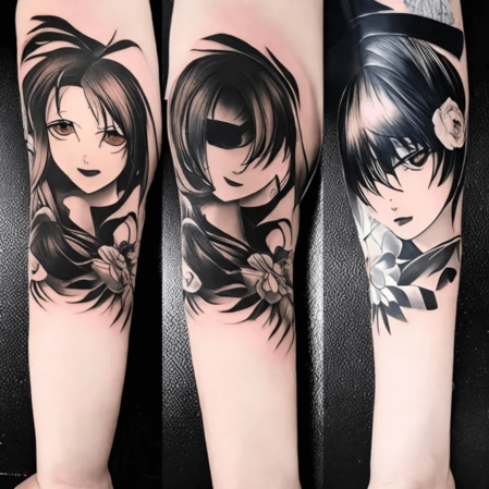 Siyah beyaz anime dövmesi