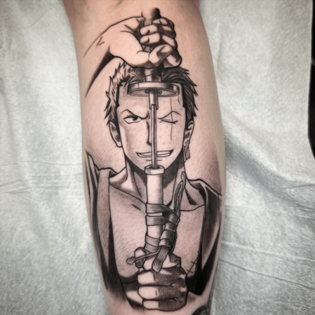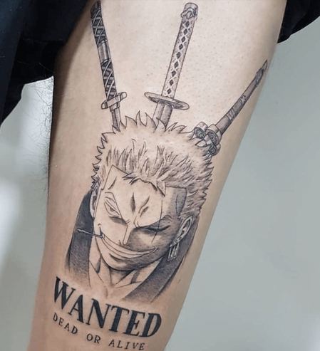 1000'den fazla bölüm izleyen özel tek parça hayranlar için, anime'den ilham alan bir dövme yapmak bir esintidir. Bu dövme, ikonik yara izini sol gözünde ve üç kılıcının kablolarını içeren savaşçı Roronoa Zoro'ya saygı gösteriyor.