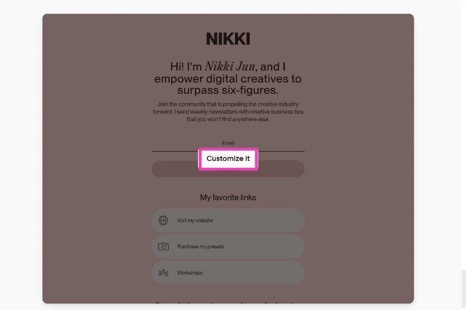 5-link limiti sizin için yeterli değilse, tüm bağlantılarınız için Linktree'yi açılış sayfası olarak kullanın. Bu eski okul yöntemi, çok fazla platformu olanlar için hala iyi çalışıyor. Linktree'de bir bağlantı sayfası oluşturabilirsiniz.