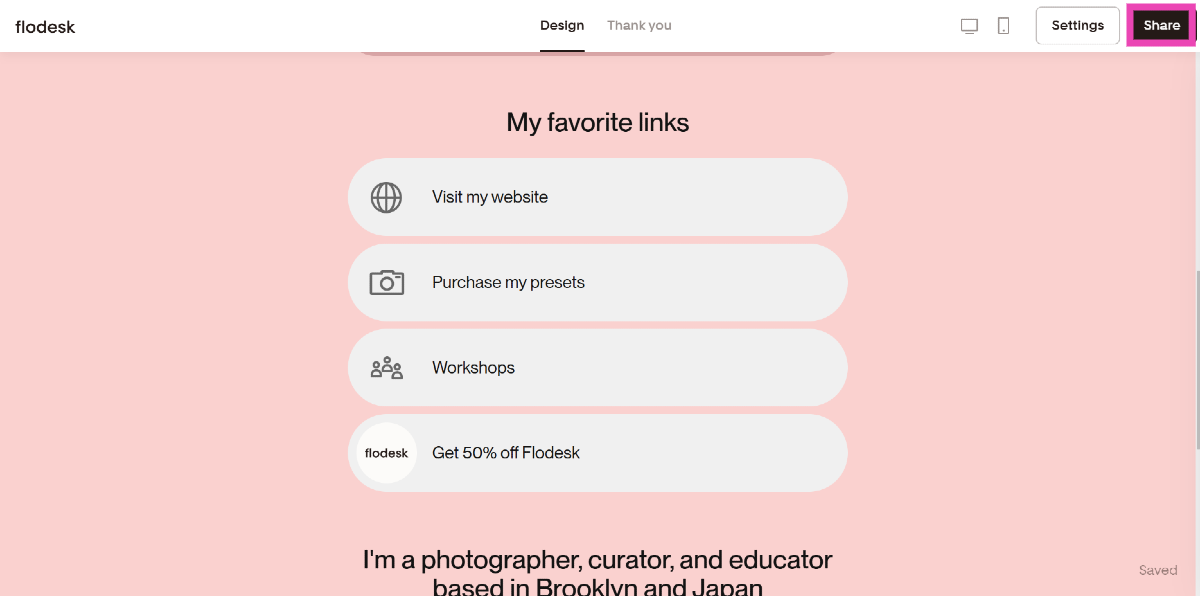 Biyografinize birden çok bağlantı eklemek için Flodesk kullanın