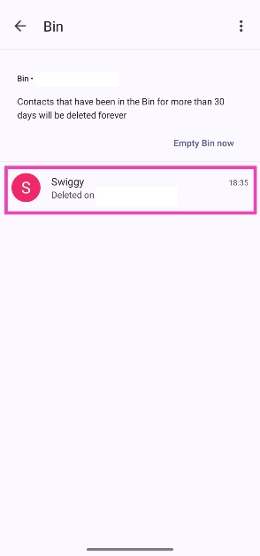 Öte yandan, Android OEM'lerin bağımsız iletişim uygulamaları, cihaz kontakları için özel bir geri dönüşüm kutusuna sahiptir. Bir Samsung akıllı telefon kullanıyorsanız, restorasyon amacıyla kişilerinizi yedeklemenize gerek yoktur. Silinen tüm kişiler, kalıcı olarak silinmeden önce 30 gün boyunca geri dönüşüm kutusuna taşınır.
