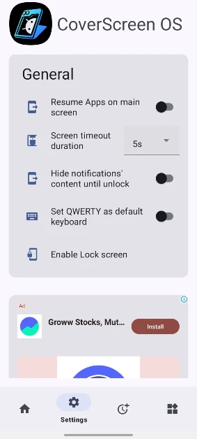 Multistar'dan etkilenmediyseniz, her zaman coverscreen işletim sistemini kontrol edebilirsiniz. Bu üçüncü taraf uygulaması, basit bir kaydırma hareketiyle kapak ekranındaki uygulama çekmecesine erişmenizi sağlar. Bir UI OS estetiğini yeniden yaratmasa da, gerçek bir uygulama çekmecesine çok daha yakındır. Premium bir abonelik satın alırsanız, kapak ekranının potansiyelini en üst düzeye çıkarmak için daha fazla özelliğin kilidini açabilirsiniz.