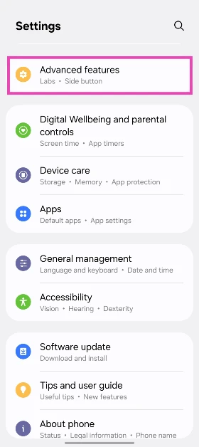 1. Adım:Gidip gelmekAyarlarve seçGelişmiş Özellikler.
