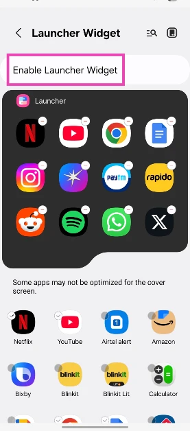 4. Adım:Açgeçiş anahtarıVeseçme.uygulamalarKapak ekranında kullanmak istiyorsunuz.