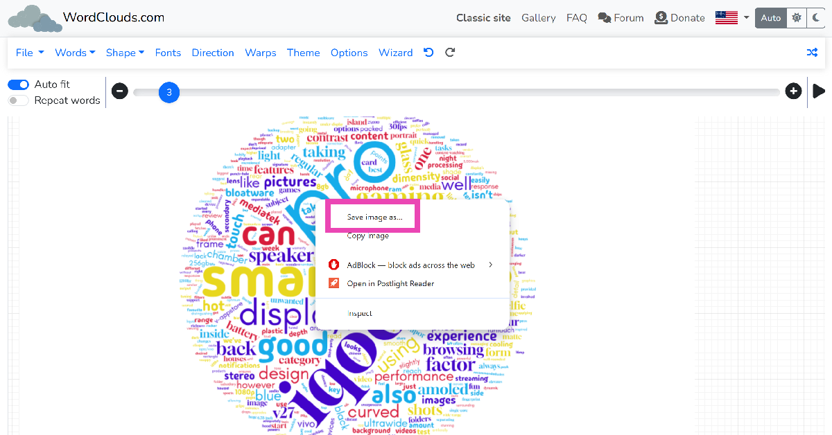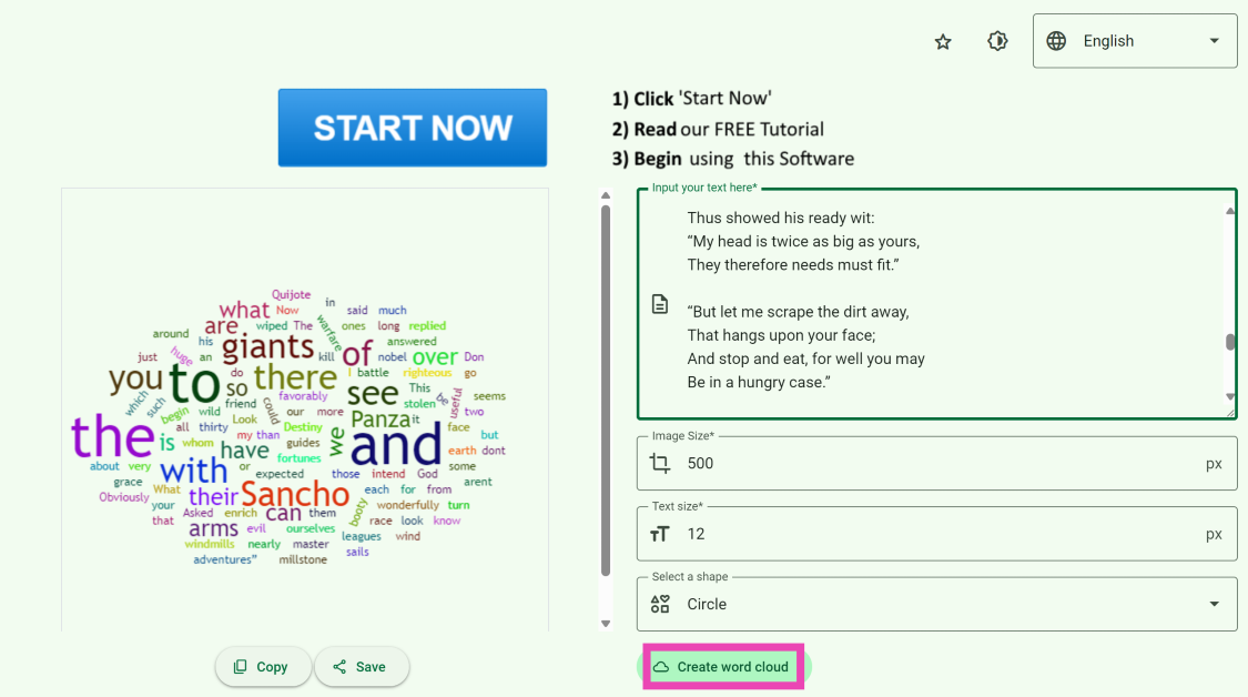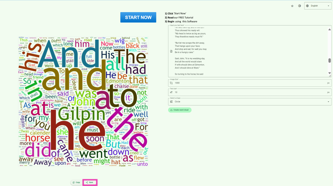4. Adım:Bulut kelimesi oluşturulduktan sonraKaydetmekCihazınıza indirmek için resmin altındaki düğme.