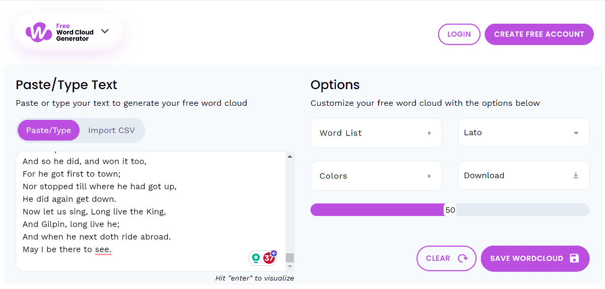1. Adım:Https://www.wordclouds.com/ adresine gidin.