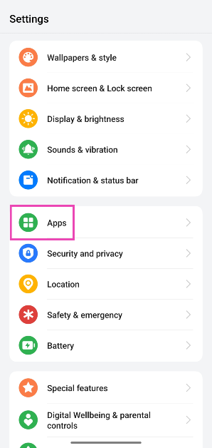 1. Adım:Gidip gelmekAyarlarve seçUygulamalar.