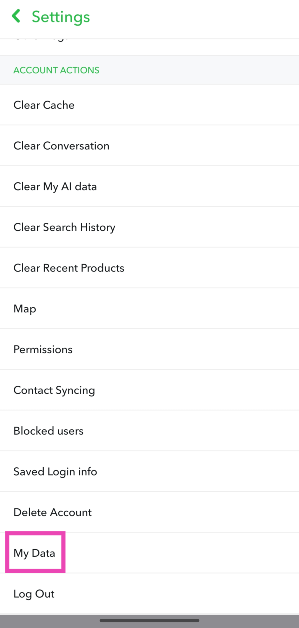 Silinmiş Snapchat anılarını kurtarmak için 'Verilerimi' kullanın