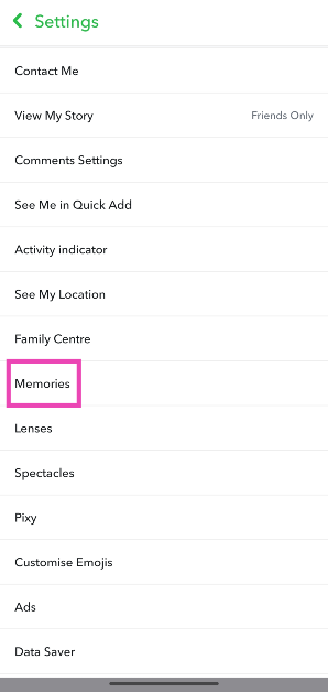 3. Adım:Aşağı kaydırın ve seçinHatıralar.