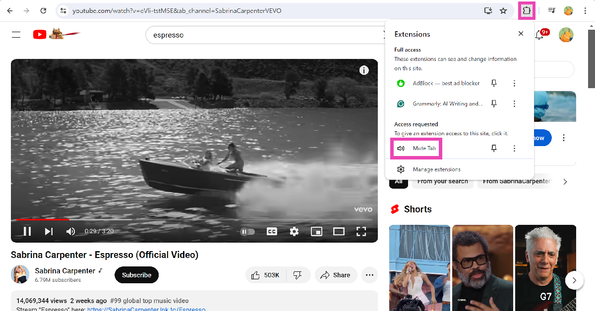4. Adım:Üzerine tıklayınSessiz sekme uzantısı.