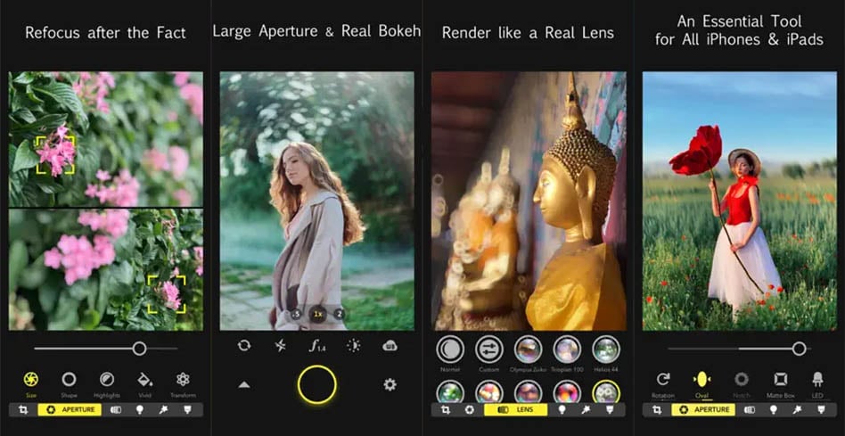 Uygulama ayrıca, farklı bokeh spot efektleri oluşturmak için çeşitli simüle diyafram diyaframları sunar ve size fotoğraflarınızla deney yapma esnekliği sağlar.
