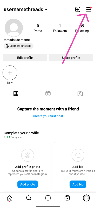 2. Adım:VurmakInstagram simgesiekranın sağ üst bölümünde.