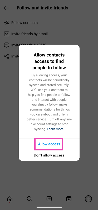 Adım 7:Instagram'a izin vererişimTelefonunuzun kişilerine.