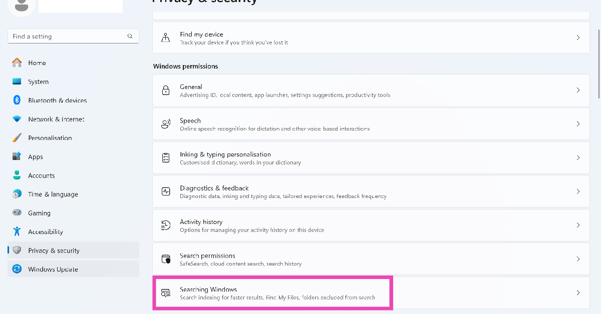 3. Adım:Aşağı kaydırın ve çift tıklayınWindows Arama.