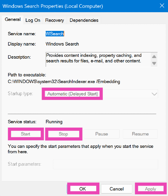 Windows arama hizmetini durdurun ve tekrar başlatın. Ayrıca, Dosya Gezgini'ni yeniden başlatın ve Görev Yöneticisi'ndeki arama görevlerini yeniden başlatın.