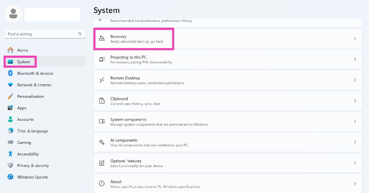 1. Adım:Gidip gelmekAyarlarve seçSistemkenar çubuğundan.