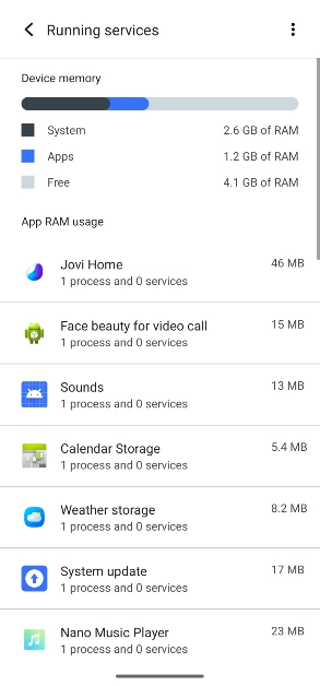 Telefonunuzdaki oluşturma numarasına 7 kez dokunarak geliştirici modunu girin. Sonra gitGeliştirici Seçenekleri> Çalışan HizmetlerŞu anda hangi uygulamaların cihazınızdaki RAM'i kullandığını görüntülemek için.