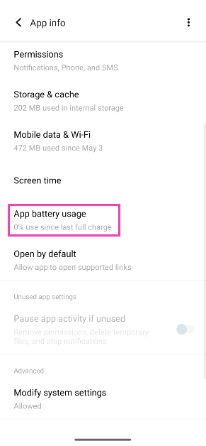 Bir uygulamanın çok fazla pil kullandığını düşünüyorsanız,Ayarlar> Uygulamalar, seçin, 'Pil' üzerine dokunun ve 'Kısıtlı' seçeneğini seçin.