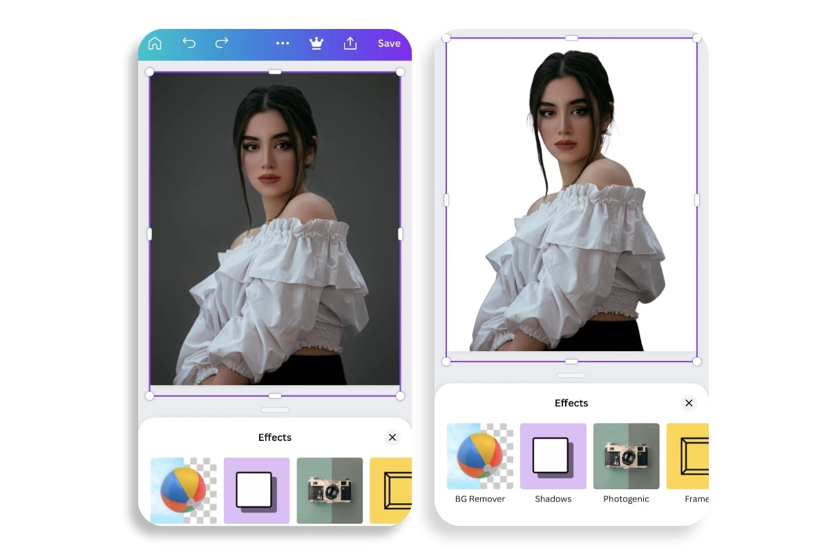 Canva, çok sayıda özelliğe sahip çok yönlü bir görüntü düzenleme uygulamasıdır. Akıllı arka plan silgi aracı, ana kişiyi veya nesneyi otomatik olarak algılayarak istenmeyen arka planları kaldırır. Görüntüyü manuel olarak finanse etmek için fırça aracını kullanabilirsiniz.