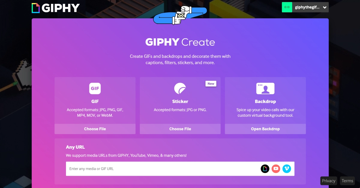 3. Adım:KopyalabağlantıYouTube videosu ve onu içine yapıştırın 'Herhangi bir urlGiphy'de kutu.
