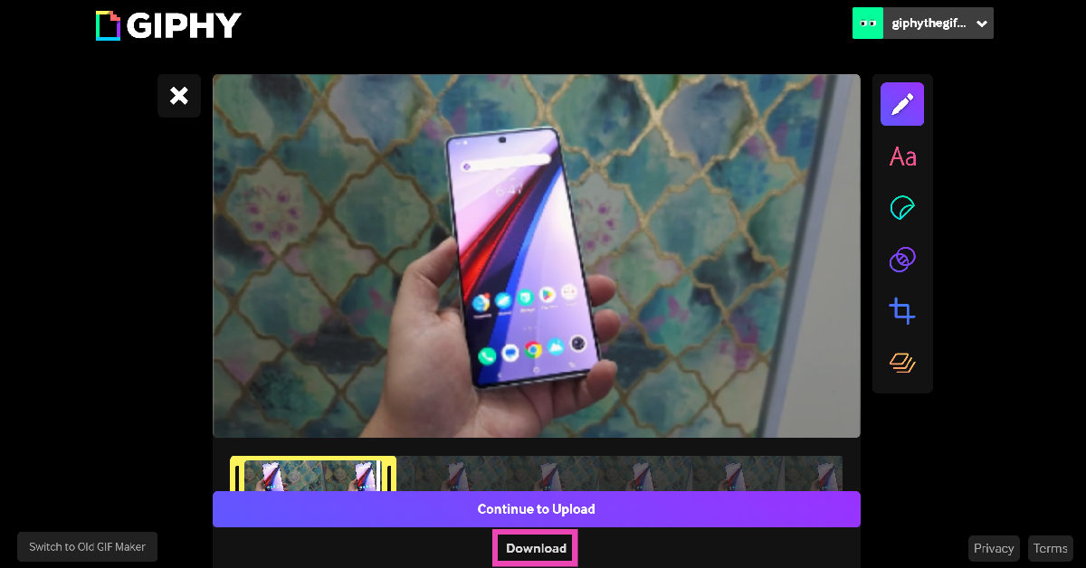 Adım 6:DüzenlemekAşağıdaki sayfadaki GIF. Uzunluğunu daha da kısaltmayı veya bir altyazı, filtre veya çıkartma eklemeyi seçebilirsiniz.