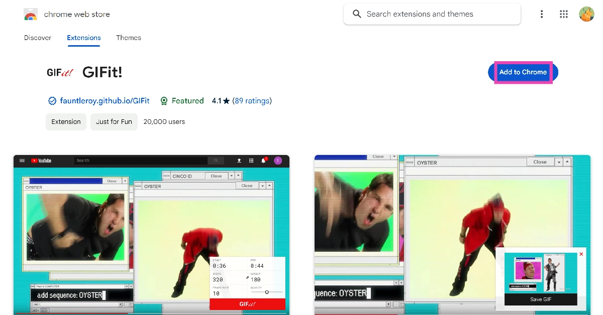 1. Adım:AraştırmakGifit! Chrome web mağazasındaVeeklemektarayıcınıza.