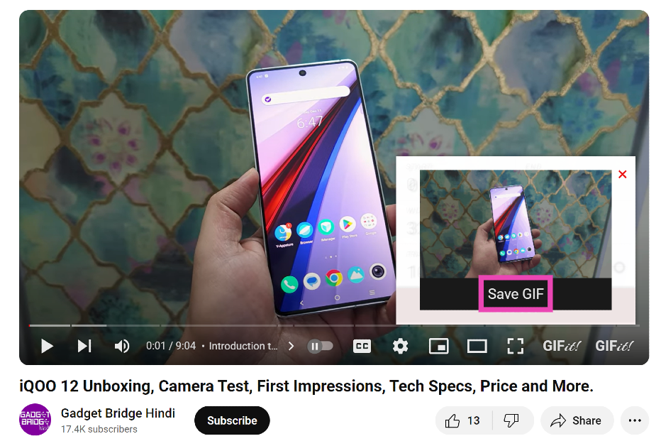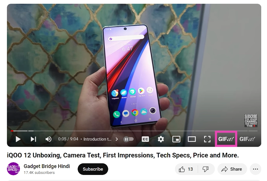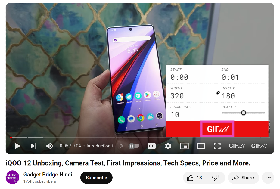 3. Adım:Üzerine tıklayınGifit! düğmeYouTube video oynatıcısında.