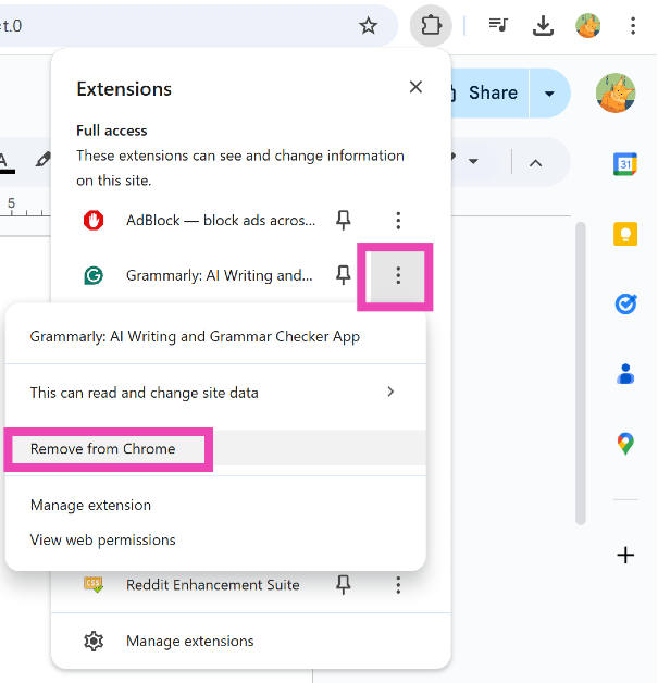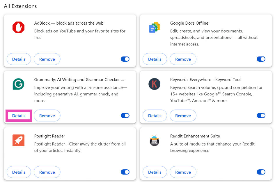 Adım 6:Dilbilgisi Gizli Modda iyi çalışıyorsa, diğer yüklü uzantılar buna neden oluyor.arızatarayıcınızda. Rogue uzantısını bulun ve kaldırın.
