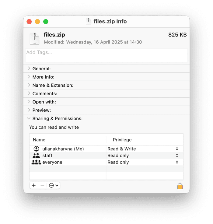 - Bilgi Get penceresinin altına gidin ve Paylaşım ve İzinler bölümüne bakın. 'Okuyabilir ve yazabilirsin' demelidir.