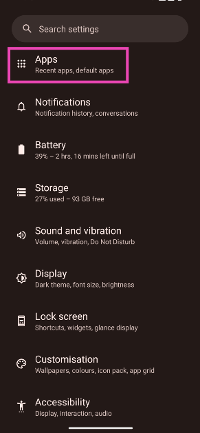 1. Adım:Gidip gelmekAyarlarve seçUygulamalar.