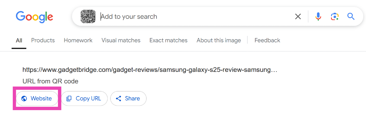 Evet, bir kodu taramak için PC'nizdeki Google Lens'i kullanabilirsiniz. Google'ın ana sayfasına gidin, lens simgesini tıklayın ve kodu bilgisayarınızın dahili belleğinden yükleyin. Arama Sonuçları sayfasında, koda yerleştirilmiş sayfaya inmek için 'Web Sitesi'ni tıklayın.