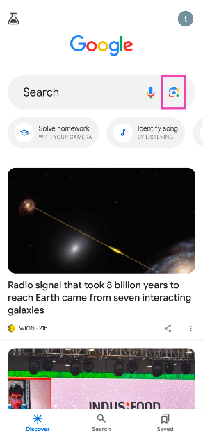 2. Adım:VurmakGoogle lens simgesiekranın sol üst köşesinde.