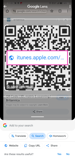 Google uygulamasını başlatın ve herhangi bir QR kodunu taramak için Lens simgesine dokunun. Kameranızı koda doğru yönlendirin ve ekranda ortaya çıkan sonucu inceleyin.