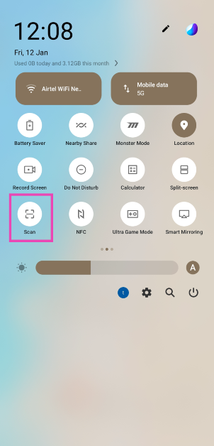 Hızlı Ayarlar menüsünde 'tarama' karo kullanın